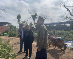 12月30日,成员到红旗镇菠萝蜜受损最严重的大山村委会那佑村菠萝蜜园进行交流,该园区10余年树龄的马来一号菠萝蜜,受“摩羯”台风影响,遭受了“灭顶”之灾,所有树体枝条所剩无几。尽管经过近4个月的生长,在主干枝条上仅能看见零星的嫩枝和叶片,恢复情况相当缓慢。与基地负责人交流,下一步将寻求资金,通过嫁接、改种或缓慢恢复等方式进行重建。