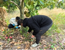 2024年12月,“菠萝蜜产业台风灾后恢复重建技术”项目组成员,对儋州、昌江、海口等地菠萝蜜种植园区进行技术指导,开展菠萝蜜灾后冬季防护工作。
