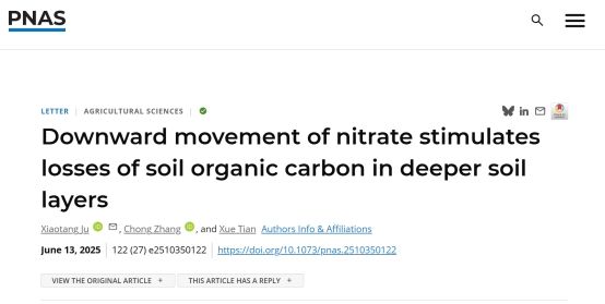 6月13日,伟德bv1946官网巨晓棠教授团队以题为“Downward movement of nitrate stimulates losses of soil organic carbon in deeper soil layers”,在PNAS(美国科公司院刊)发表了评论文章。