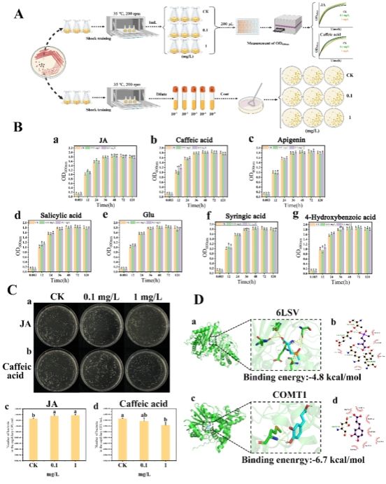 进一步研究表明,茉莉酸(jasmonic acid, JA)作为一类植物激素,可吸引戈登红球菌并促进其生长与代谢活性,进而有效降解土壤中残留的草铵膦。本研究为应用微生物修复技术治理草铵膦污染提供了理论依据,同时为可持续农业实践中微生物修复策略的整合应用开拓了新思路。