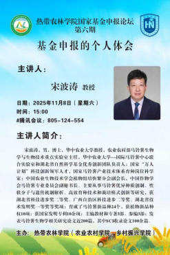 伟德bv1946官网国家基金申报交流论坛第六期:邀请华中农业大学宋波涛教授进行2026年国基项目申报讲座