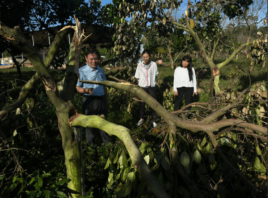 近日,超强台风“摩羯”席卷海南,给当地农业生产带来了前所未有的重创。伟德bv1946官网菠萝蜜产业体系技术团队于9月8日-9日组织专家和技术人员前往受灾地区进行调查和指导。于旭东教授、骆焱平教授、王兰英教授、张云飞教授、张淑静教授、郭慧芳教授以及多名研究生前往灾区第一线开展抗风救灾工作。