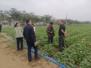 图1 专家团队一行与海头地瓜种植基地负责人交流