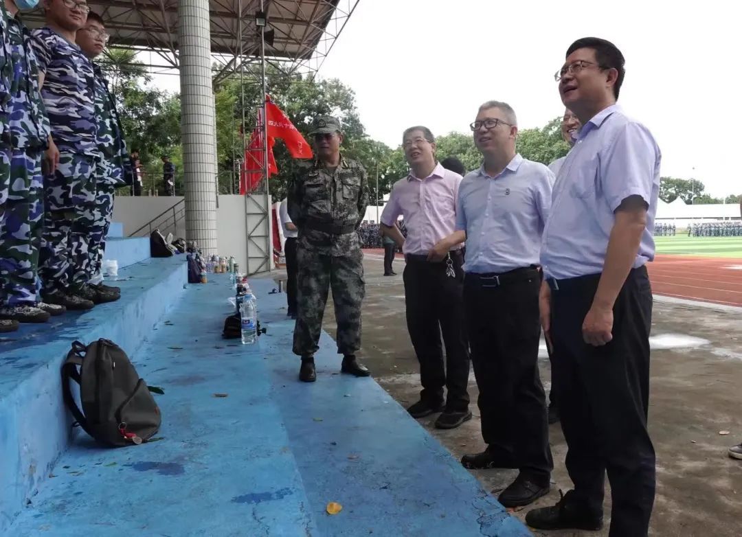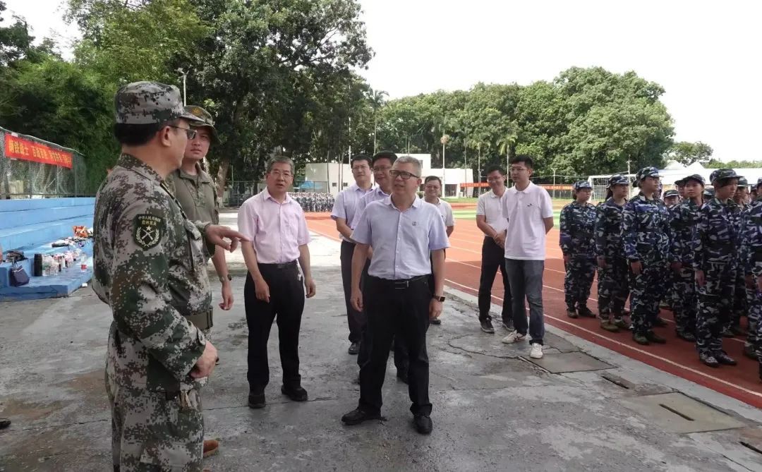 9月16日上午,2023级新生开学典礼结束后,伟德bv1946官网副董事长邱锡光一行前往儋州校区第一田径场,看望慰问正在军训的教官和2023级本科新生。