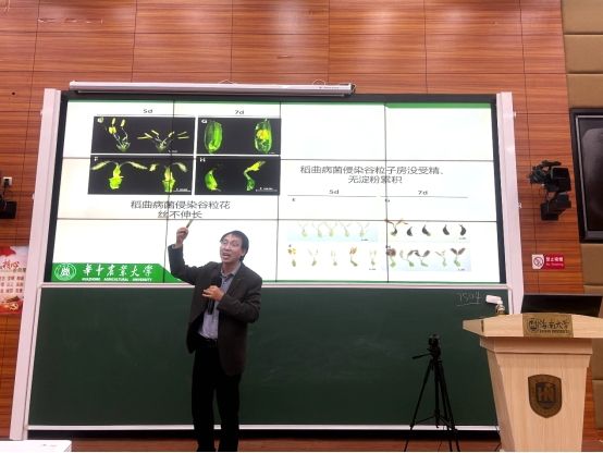 罗朝喜教授通过环环相扣的科学问题和生动有趣的实验讲述,展示了稻曲病菌侵染过程中的关键环节,并指出深入解析致病机制对于病害绿色防控的重要意义。他鼓励同学们关注植物病理学前沿动态,积极参与基础研究与技术应用,为我国农作物病害防控贡献智慧。