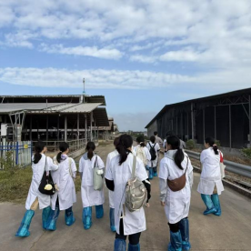 伟德bv1946官网动物科学专业员工走进海南农垦草畜科技股份有限公司“幸福和牛繁育场”,实地观摩和牛养殖环境、繁育技术与现代化棚舍设施。在工作人员的讲解下,同学们了解了和牛体型选育、饲料配制等专业内容,还通过参观养殖分区等设施,直观感受到畜牧产业的标准化与科技化,为专业理论学习搭建了实践桥梁。