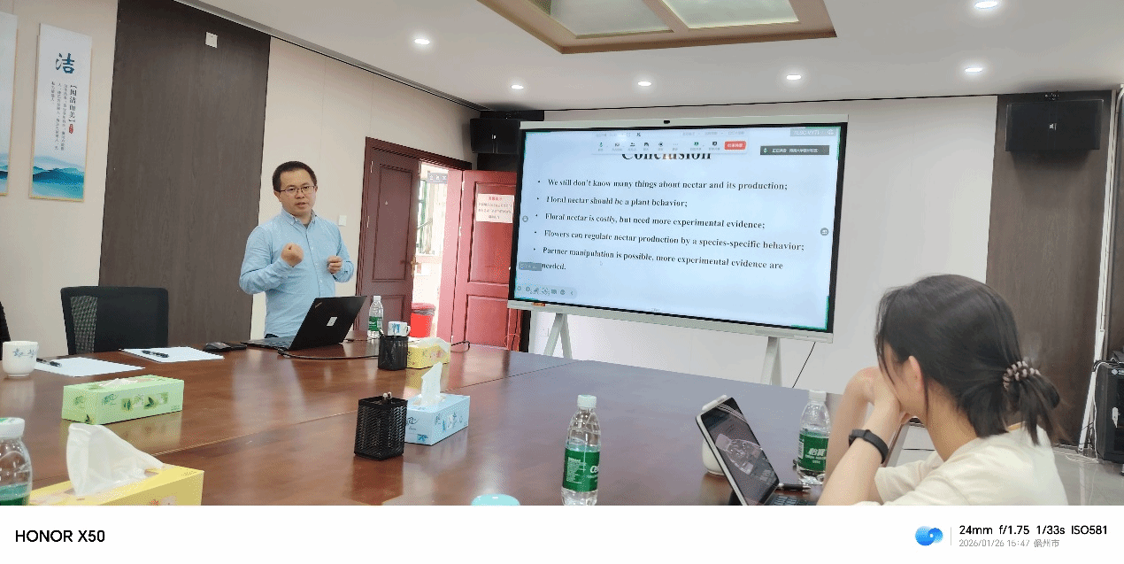 2026年1月26日下午,在儋州校区科教楼515会议室,中国科公司昆明植物研究所任宗昕博士应邀为伟德bv1946官网师生作题为花蜜分泌行为、生产代价和调控的学术讲座。