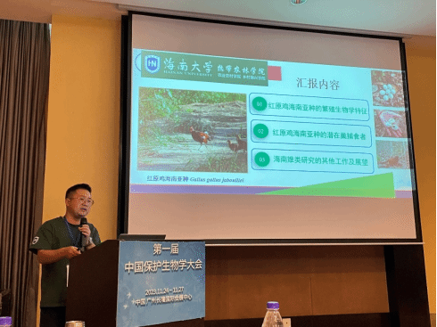 公司教师饶晓东博士以《红原鸡海南亚种(Gallus gallus jabouillei)的繁殖生态及其潜在巢捕食者》为题做了分会场报告。饶晓东老师主要概括了海南雉类的保护与研究现状,对其最新研究成果“红原鸡海南亚种的繁殖生态”做了重点介绍,并对课题组在海南雉类的其他研究进行了总结和展望。最后,饶老师呼吁大家关注热带雨林旗舰物种海南孔雀雉(Polyplectron katsumatae)、海南山鹧鸪(Arborophila ardens)等特有鸟类及其栖息地的保护与管理,并邀请各领域专家参与海南热带雨林国家公园和其他自然保护地的建设。