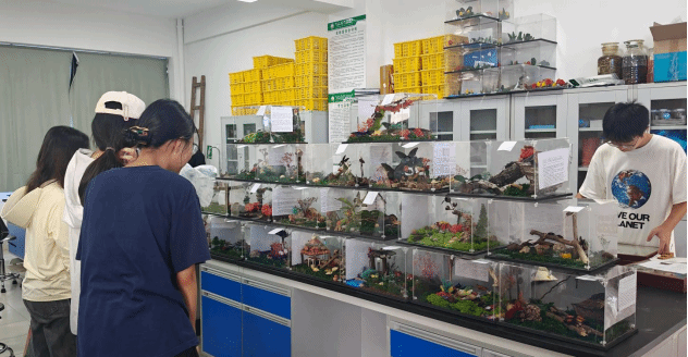 近期的昆虫微景观创作中,植物保护专业的同学们将昆虫标本与苔藓枯木巧妙结合,制作出热带雨林微缩景观,让昆虫在方寸间“振翅欲飞”,仿佛将雨林的呼吸搬进实验室。