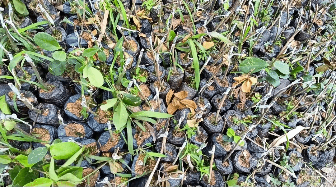 首先,来到油茶种植基地,该基地的油茶是2020年底至2021年种下,植后已有3年多。油茶幼树的风害主要以倒伏和枝干折断为主。为此,建议在灾后的7天内及时处理风害树。对倒伏幼树的处理,先是将倒伏树扶正,并修剪外露的受损根系,接着填土踩实,最后再用支柱加以固定。处理后要加强水肥管理,以尽快恢复生长。灾后如发现有明显的病虫危害时,应及时喷施高效的杀菌剂和杀虫剂进行防控。